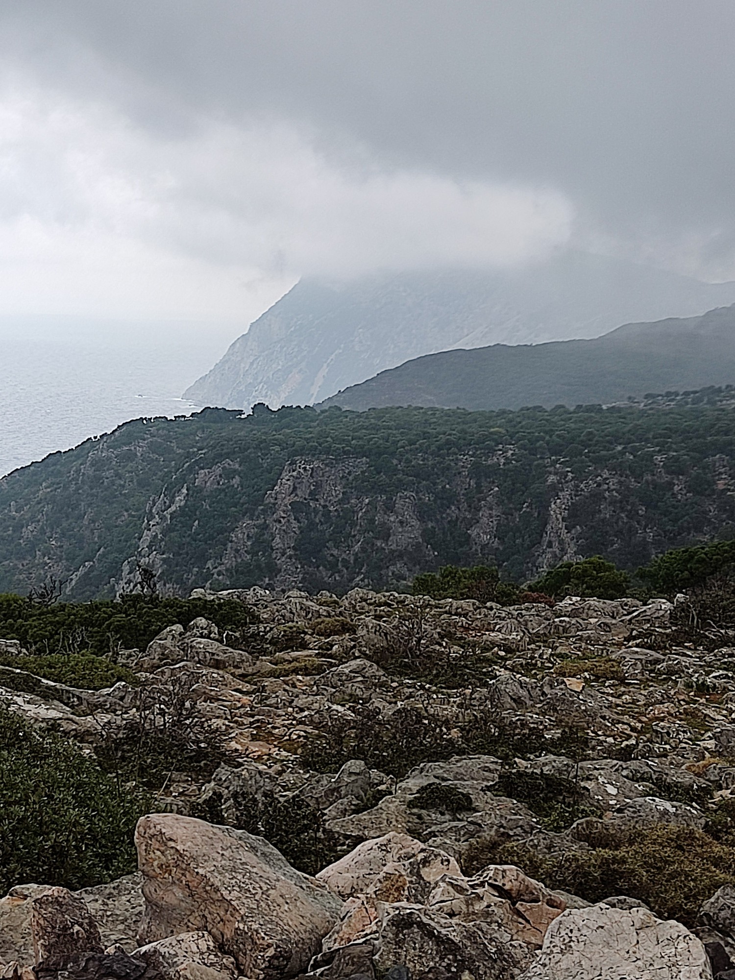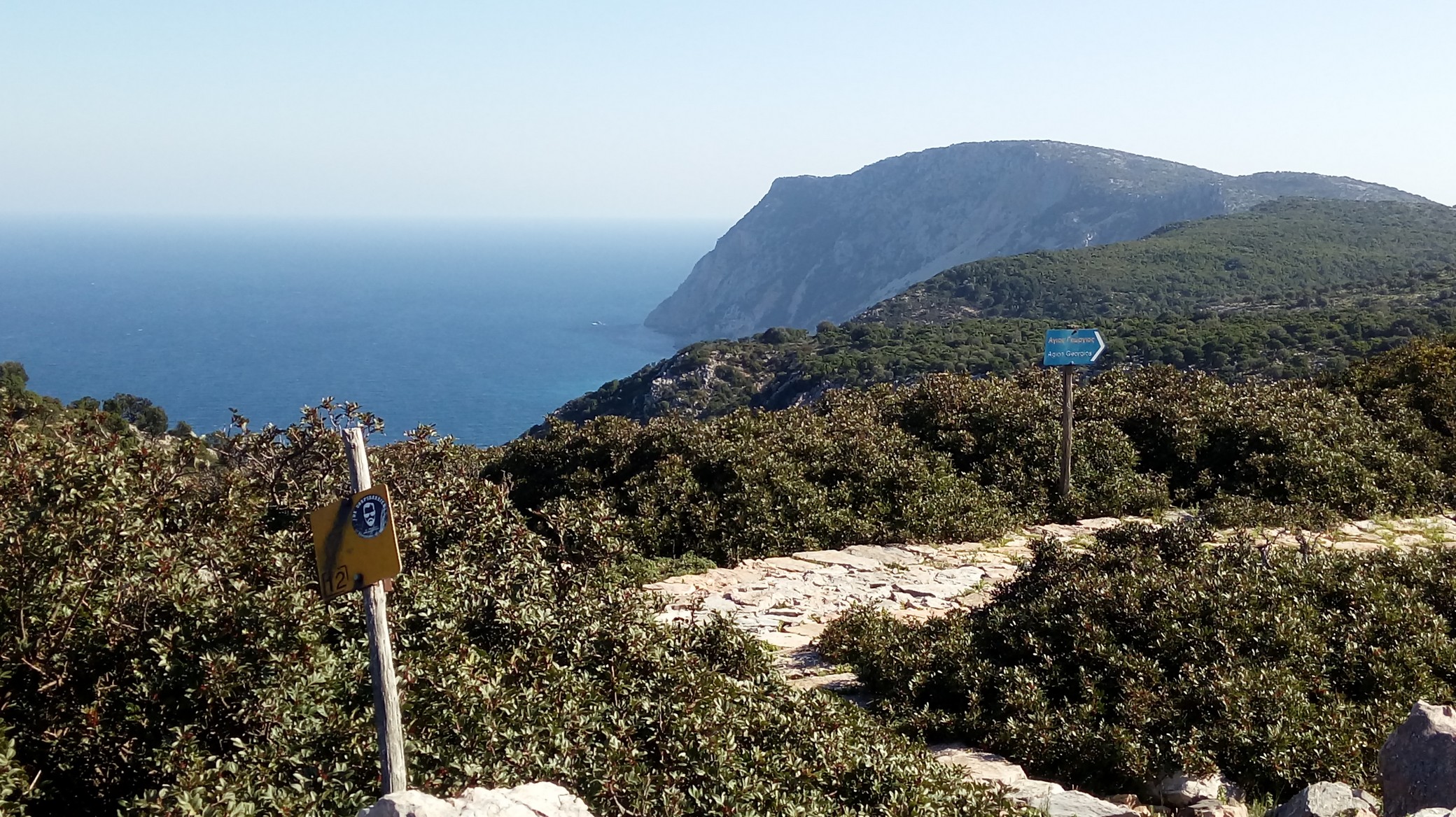 Reaching the upper location of Ag. Konstantinos, Psili Rahi, a great view opens towards Skopelos and after this we continue along the path towards Megalo Horafi. We pass over a few Lakka (small fields where the locals grew wheat in former times) hidden in the woods and at a certain point an impressive view opens towards the southern part of Alonissos and the surrounding sea. From Megalo Horafi the tour follows the path towards Vathi to Rema and then up over Tourkovigla reaching its top where a view including the whole of the southern island appears.