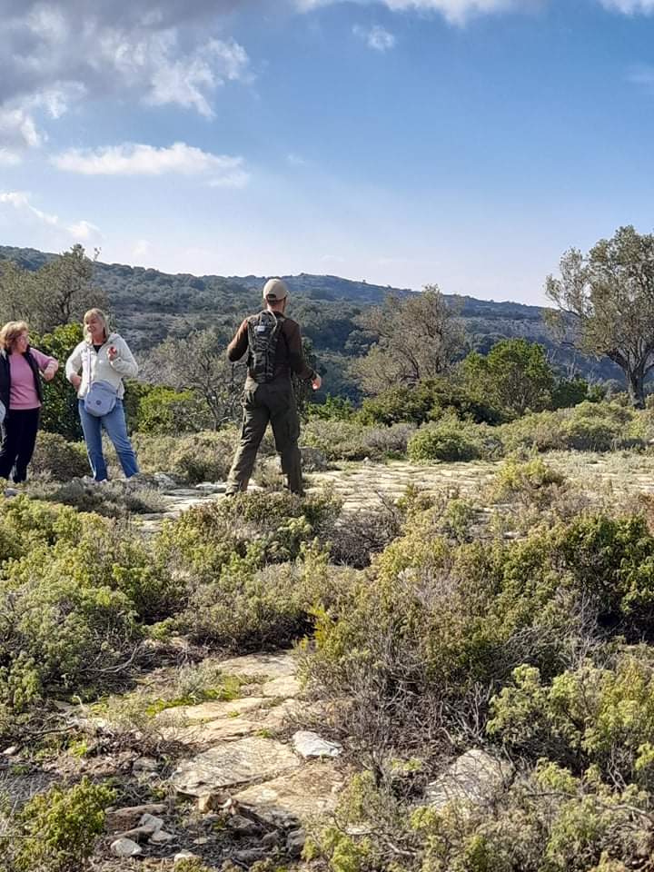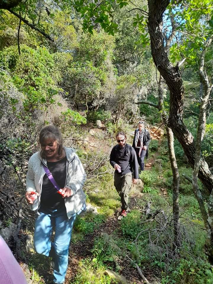 The tour starts at Melegakia and at first the route follows a small streambed surrounded by a forest of tree-heather, strawberry trees and old, big stone oaks. We pass through an area with many goats and at a certain point there is a plateau open towards the sea with a wonderful view. From here the path continues down to the little chapel of Ag. Konstantinos and we will sit and enjoy the atmosphere of this isolated location