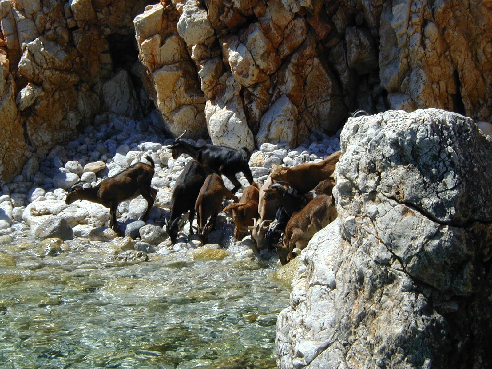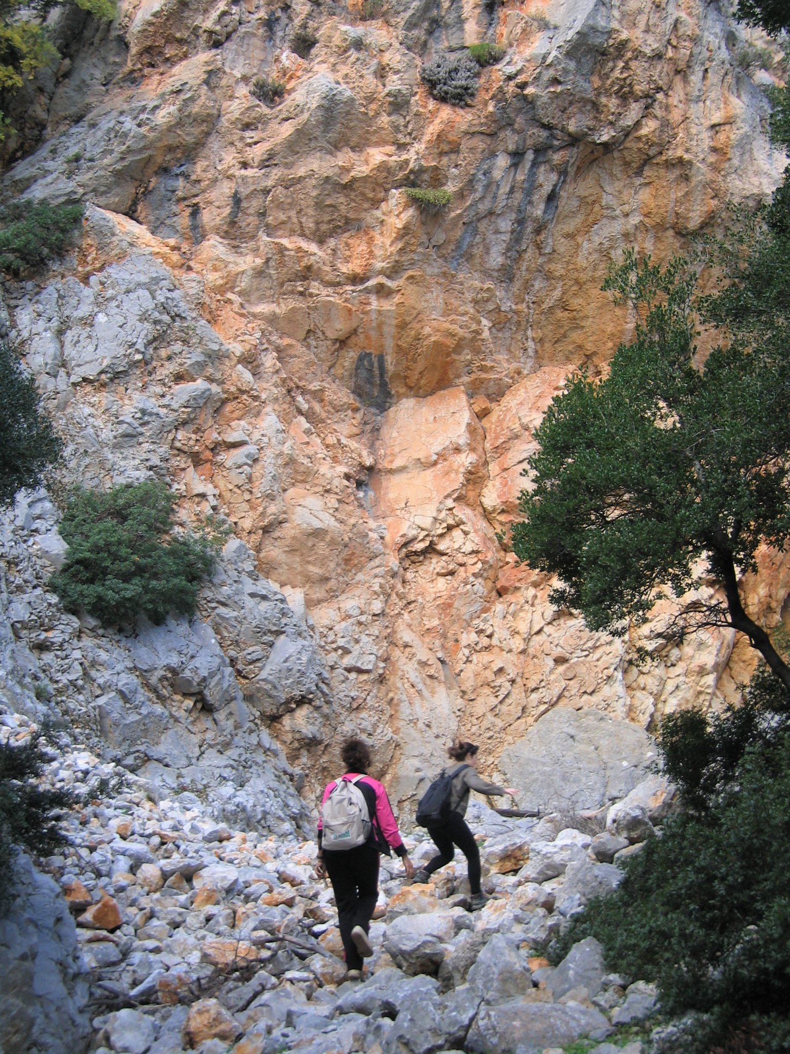 From here we continue on foot along the steep slope alongside the coast. Jason leads you into the gorge of Kastanorema and you walk along a winding path surrounded by vertical rocks. The gorge ends at the location of Kastania where there is a technical lake. We continue up to the plateau of Koumarorahi where we eat our own lunch, enjoying the impressive view over the sea and the Marine Park. After the break the tour continues down the slope back to the beach of Agios Dimitrios where you can have a swim in the clear water. Return to Patitiri by bus.